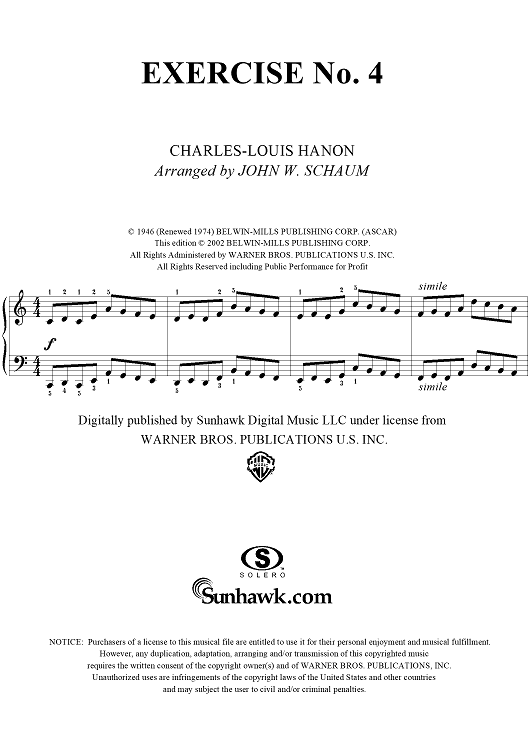 Digital Sheet Music for Exercise No. 4 by Charles-Louis Hanon, John W. Schaum scored for Piano Solo; id:287290