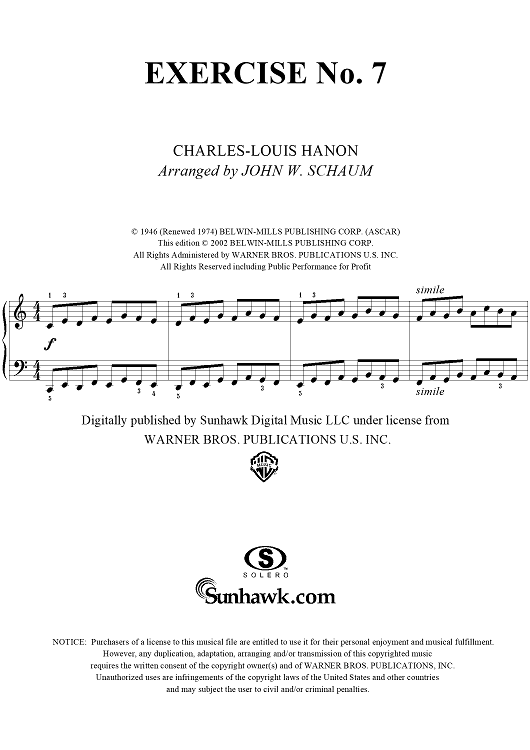 Digital Sheet Music for Exercise No. 7 by Charles-Louis Hanon, John W. Schaum scored for Piano Solo; id:287293