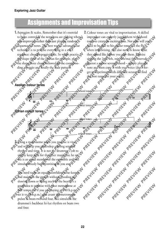 Perfect for the beginner guitarist who wants to learn more about jazz, this book provides a comprehensive introduction to the world of Jazz Guitar. Author Phil Capone explains jazz harmony in a clear and accessible style, from simple chord changes through to the II-V-I progression, turnarounds and other classic jazz sequences. Building steadily throughout the book, you'll learn authentic jazz voicings and accompaniment styles, as well as vital jazz theory. Packed with practical advice on getting to grips with improvisation, "Exploring Jazz Guitar" unlocks the secrets of jazz harmony, allowing you to construct authentic jazz solos. Complete with accompanying CD containing demonstration solos and live jazz backing tracks.