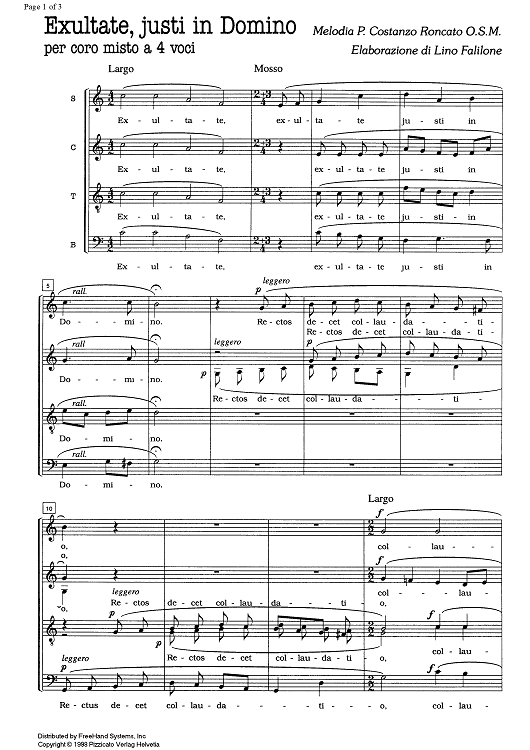 Digital Sheet Music for Exultate, Justi in Domino by , Lino Falilone, Costanzo Roncato scored for SATB Choir; id:331917