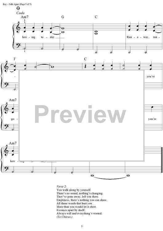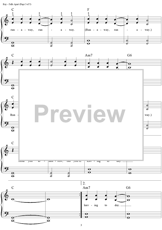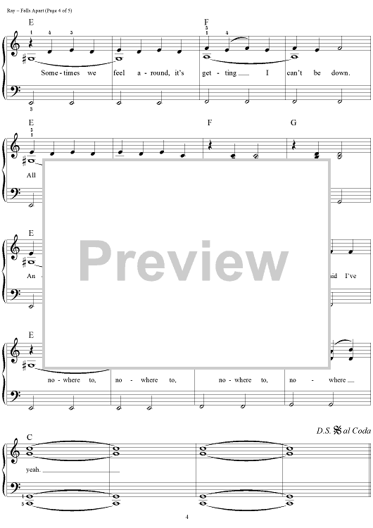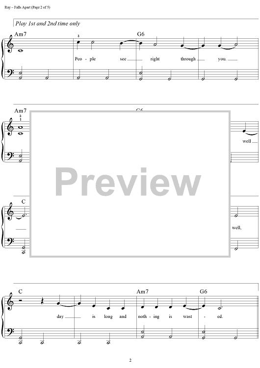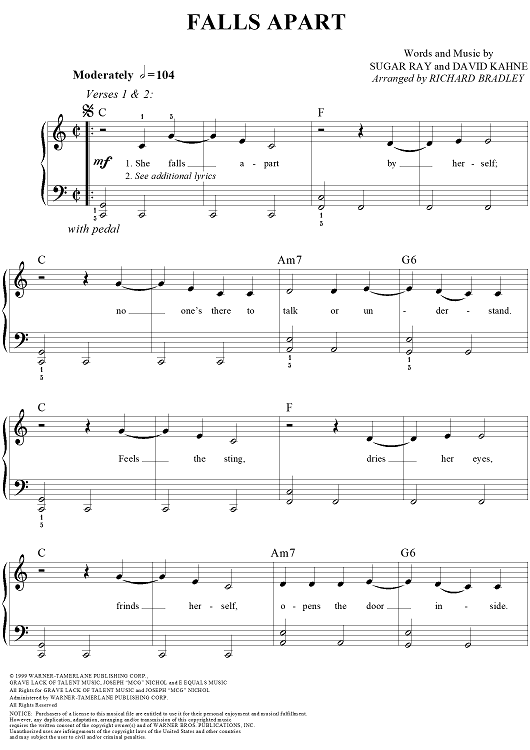 Digital Sheet Music for Falls Apart by Richard Bradley, David Kahne, Sugar Ray scored for Easy Piano; id:289121