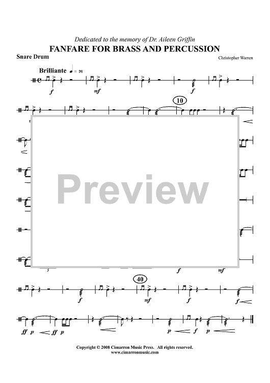 "Fanfare for Brass and Percussion - Snare Drum" Sheet Music by Christopher Warren