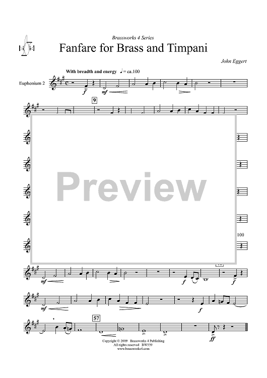 "Fanfare for Brass and Timpani - Euphonium 2 TC" Sheet Music by John Eggert