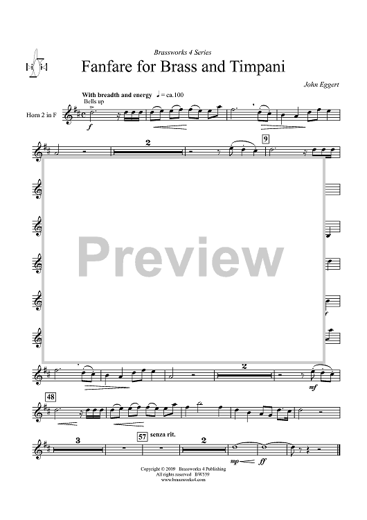 Digital Sheet Music for Fanfare for Brass and Timpani - Horn in F 2 by John Eggert scored for Brass Ensemble; id:410364