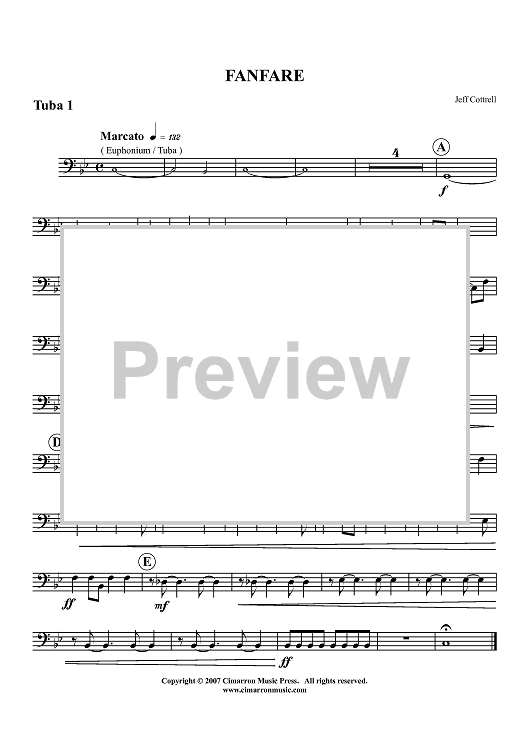 Digital Sheet Music for Fanfare for Brass Choir - Tuba 1 by Jeffrey Cottrell scored for Brass Ensemble; id:417612