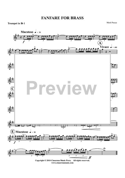 Digital Sheet Music for Fanfare for Brass - Trumpet 1 in Bb by Mark Preece scored for Brass Ensemble; id:427431