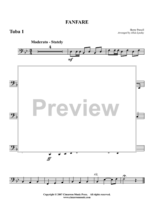 "Fanfare - Tuba 1" Sheet Music by Henry Purcell