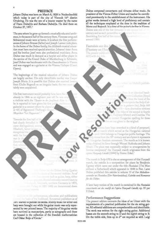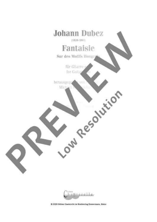 Dubez, a pupil of Mertz, was a court musician who along with the guitar also played the Zither and Harp. He was a chamber virtuoso who also played the Melophone. His 'Fantaisie' is a full scale concert virtuoso work drawing on Hungarian themes: the 'Hunyadi March', 'Hontalan' and the 'Rákóczi March'.