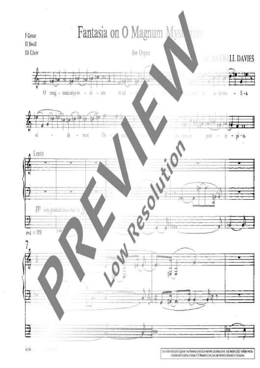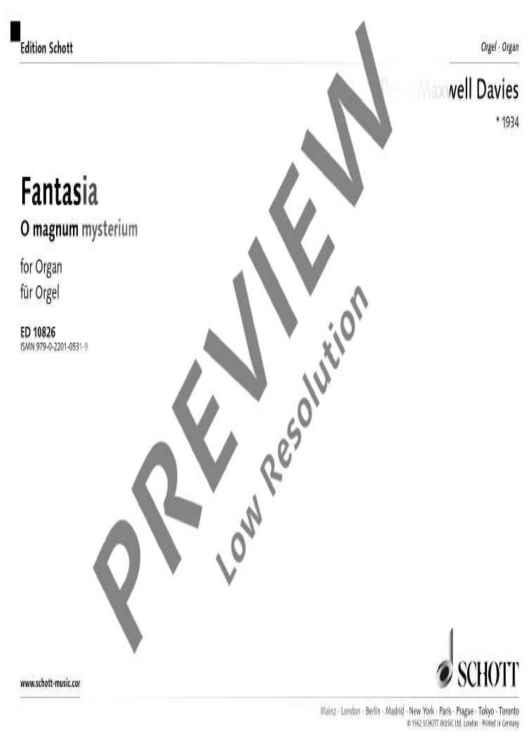 Digital Sheet Music for Fantasia on "O Magnum Mysterium" by Sir Peter Maxwell Davies scored for Organ; id:474259