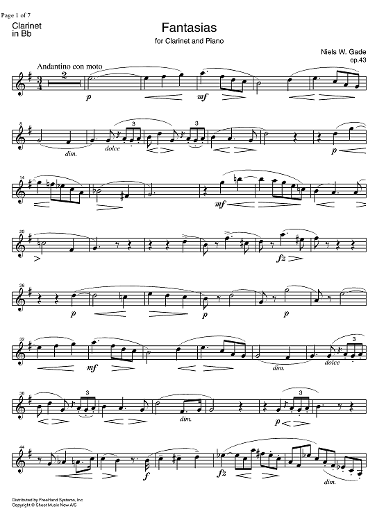 Digital Sheet Music for Fantasias Op.43 - Clarinet by Niels Gade scored for Clarinet/Piano; id:326772