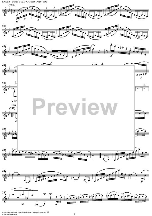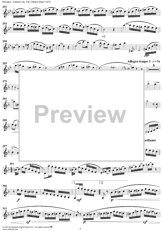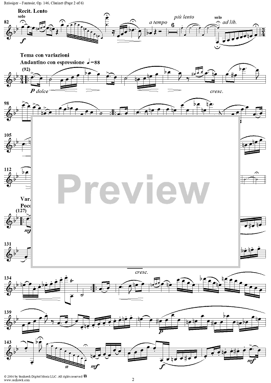 Digital Sheet Music for Fantasie, Op. 146 - Clarinet by Karl Gottlieb Reissiger scored for Clarinet/Piano; id:303150