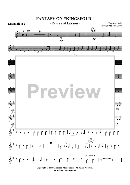 Digital Sheet Music for Fantasy on "Kingsfold" (Dives and Lazarus) - Euphonium 2 BC/TC by Ron Geese, English melody scored for Tuba Quartet; id:416327