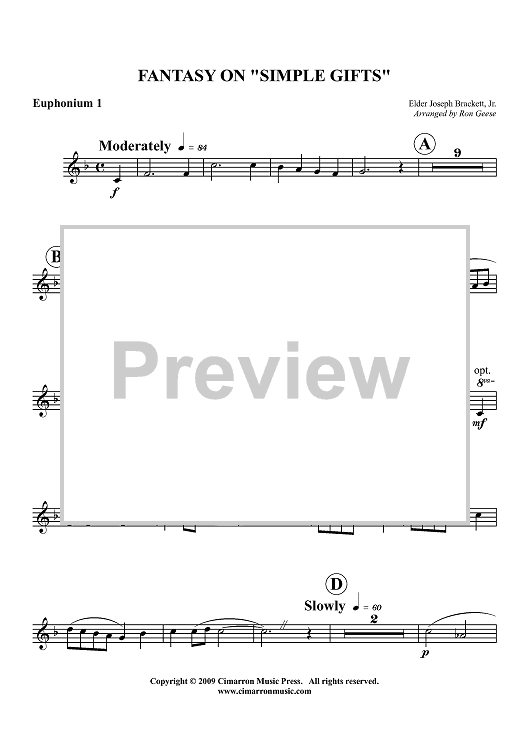 "Fantasy on "Simple Gifts" - Euphonium 1 BC/TC" Sheet Music by Elder Joseph Brackett