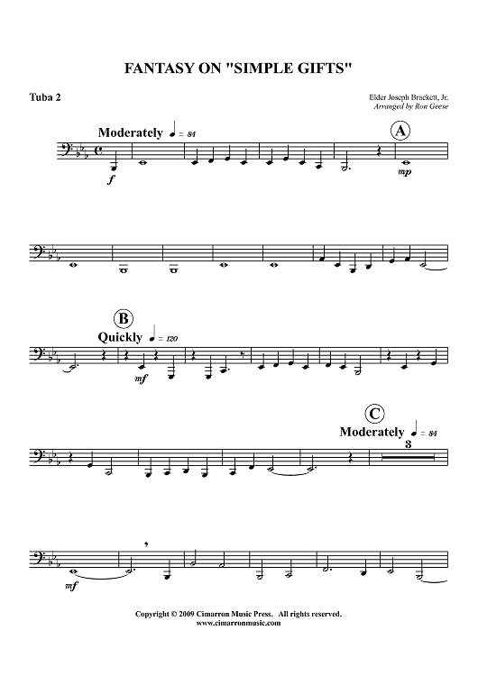 Digital Sheet Music for Fantasy on "Simple Gifts" - Tuba 2 by Ron Geese, Elder Joseph Brackett scored for Tuba Quartet; id:416350