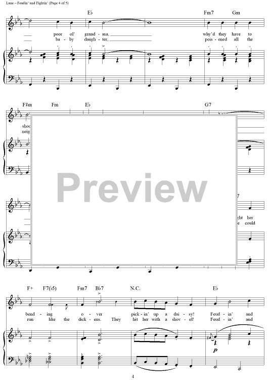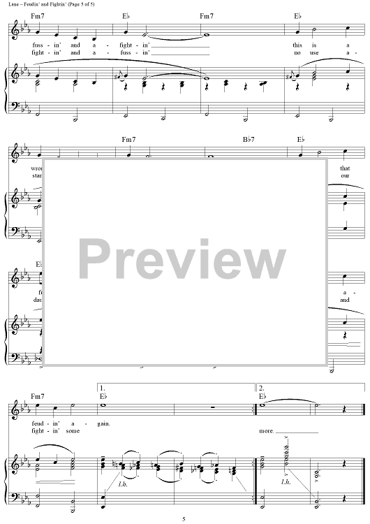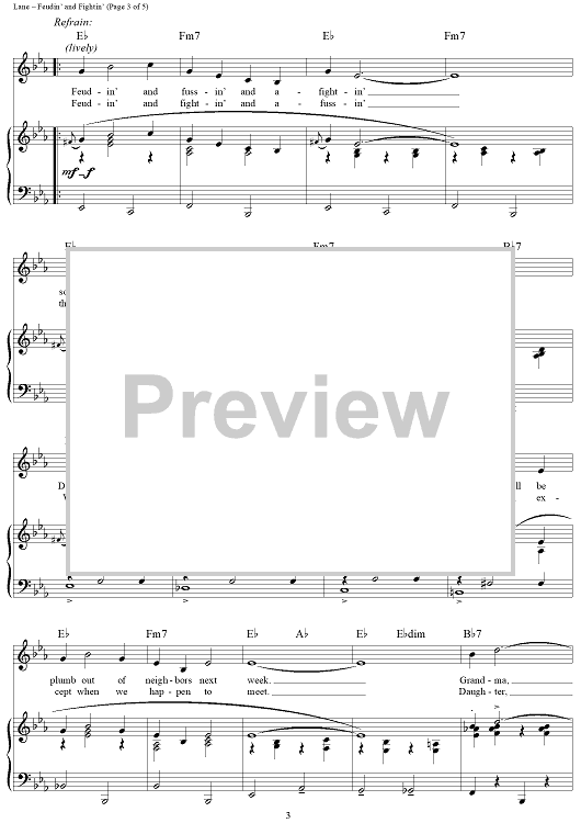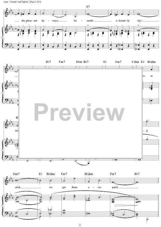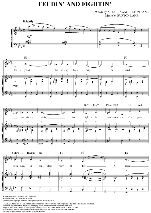 Digital Sheet Music for Feudin' and Fightin' by Burton Lane, Al Dubin scored for Piano/Vocal/Chords; id:313993