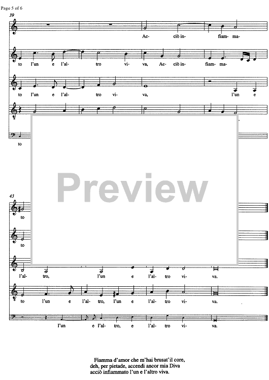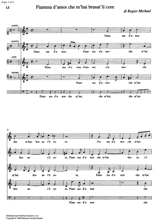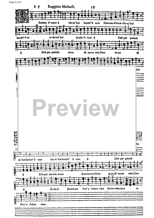 "Fiamma d'amor che m'hai brusat'il core" Sheet Music by Alessandro Orologio