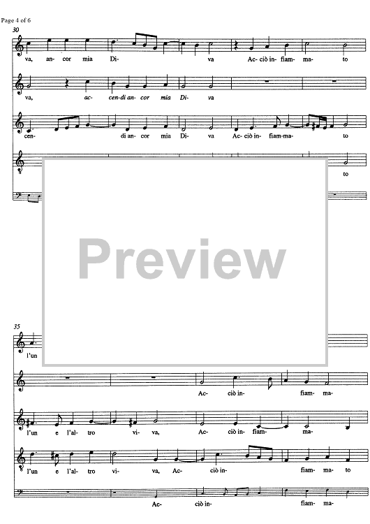 Digital Sheet Music for Fiamma d'amor che m'hai brusat'il core by , Alessandro Orologio scored for SATB Choir; id:333994