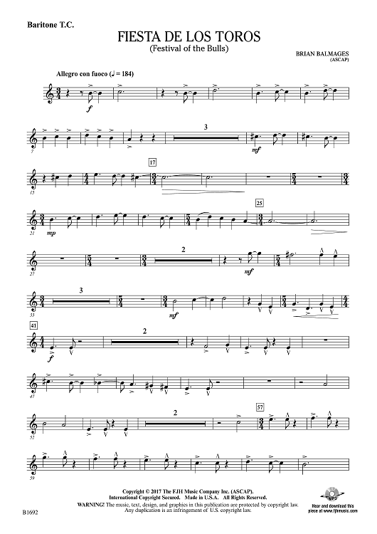 "Fiesta de los Toros - Baritone TC" Sheet Music by Brian Balmages