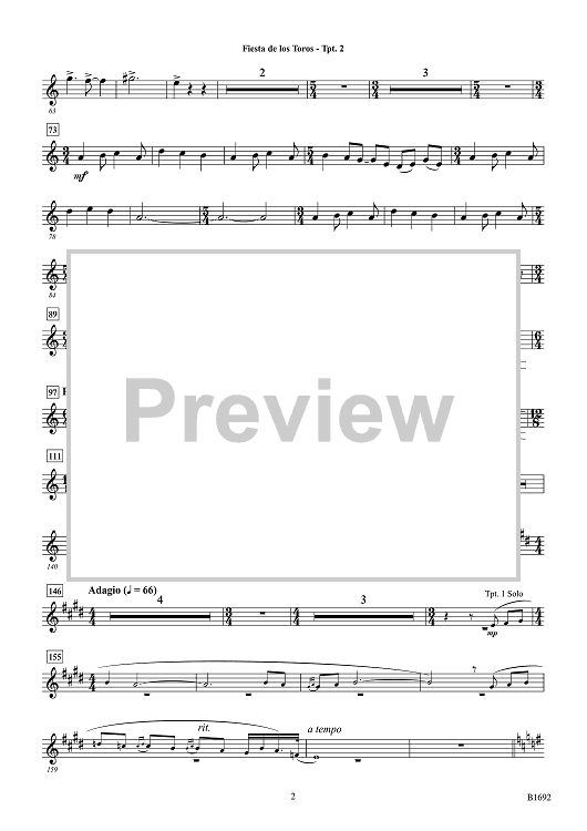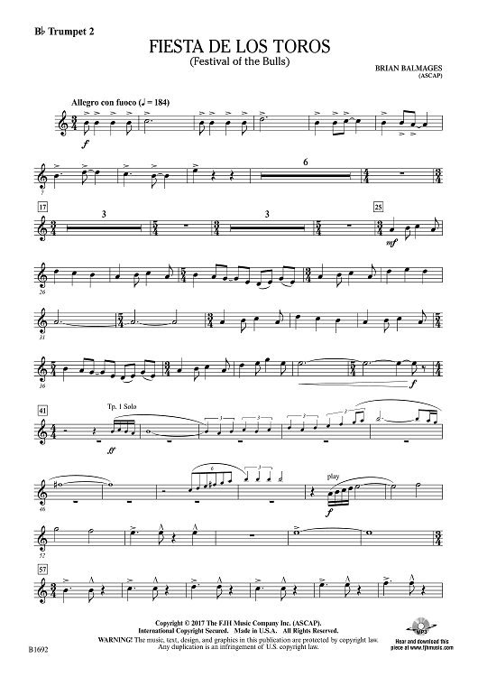 Digital Sheet Music for Fiesta de los Toros - Bb Trumpet 2 by Brian Balmages scored for Concert Band; id:510309