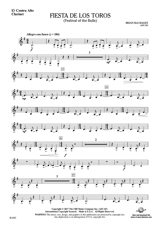Digital Sheet Music for Fiesta de los Toros - Eb Contra Alto Clarinet by Brian Balmages scored for Concert Band; id:510302
