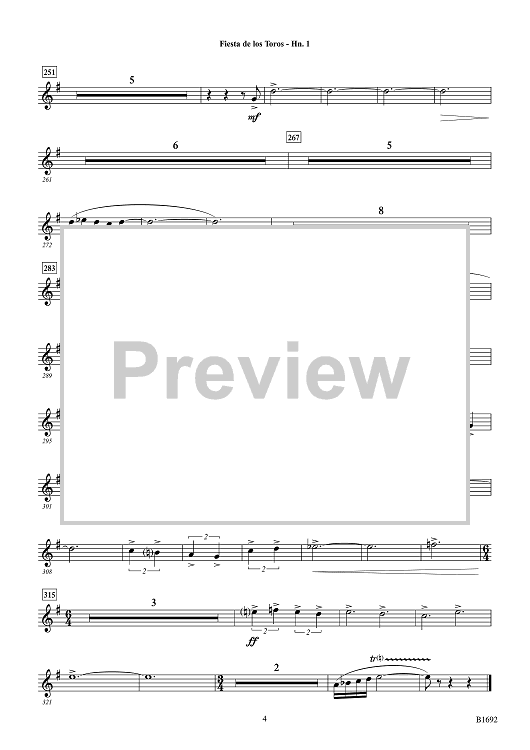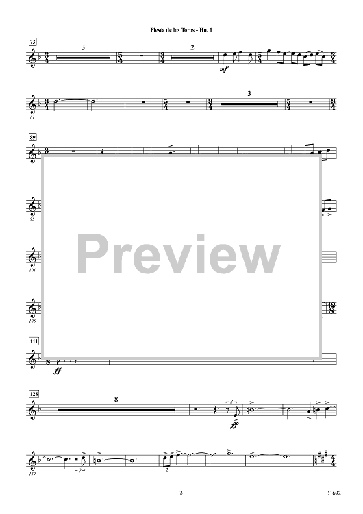 Digital Sheet Music for Fiesta de los Toros - F Horn 1 by Brian Balmages scored for Concert Band; id:510311