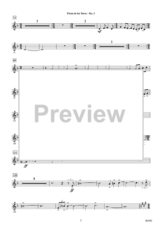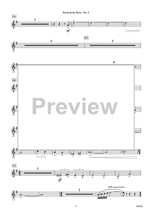 Digital Sheet Music for Fiesta de los Toros - F Horn 3 by Brian Balmages scored for Concert Band; id:510313