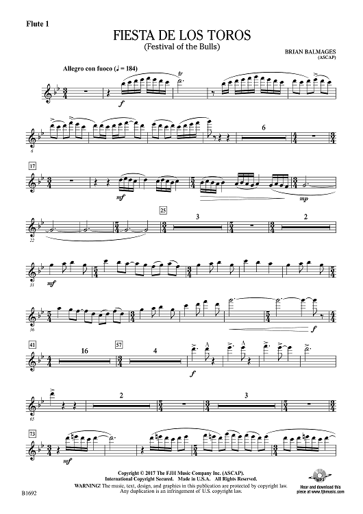 "Fiesta de los Toros - Flute 1" Sheet Music by Brian Balmages