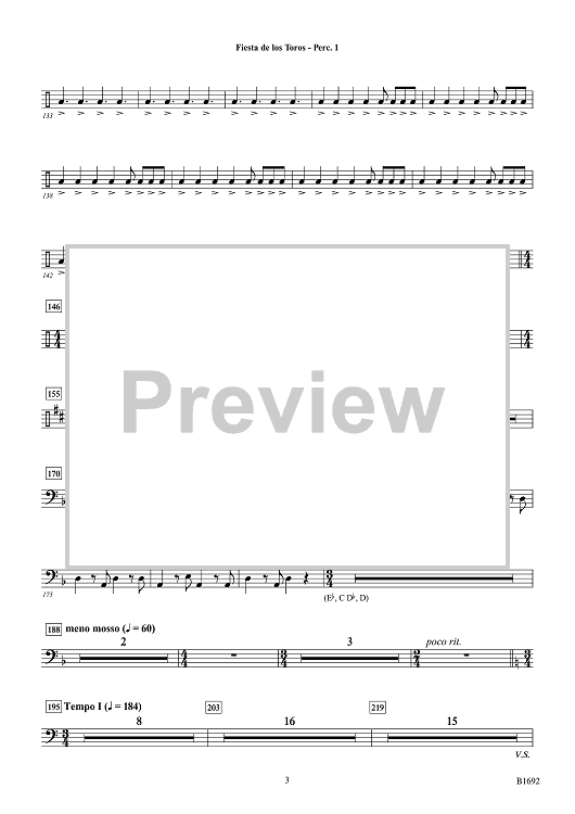 "Fiesta de los Toros - Percussion 1" Sheet Music by Brian Balmages