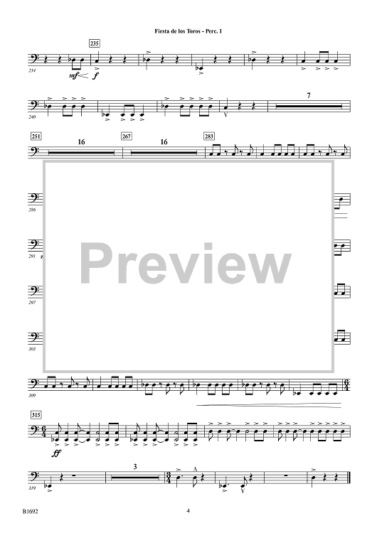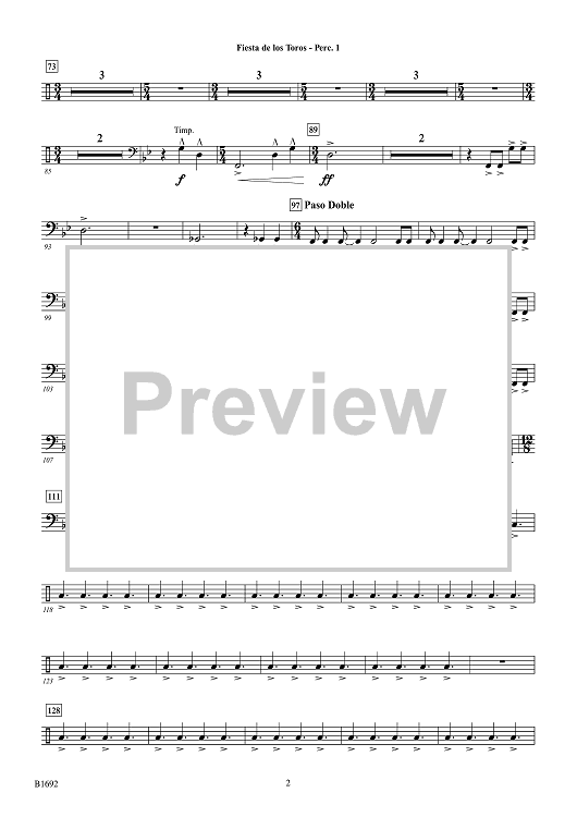 Digital Sheet Music for Fiesta de los Toros - Percussion 1 by Brian Balmages scored for Concert Band; id:510322