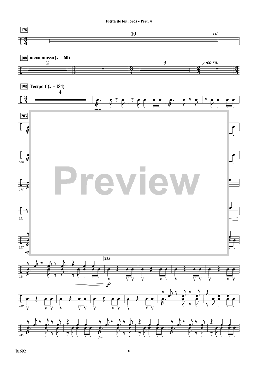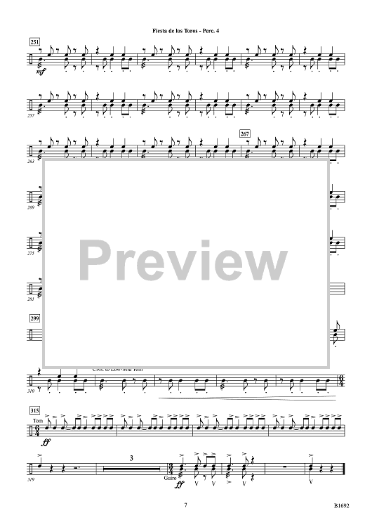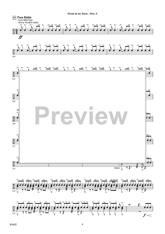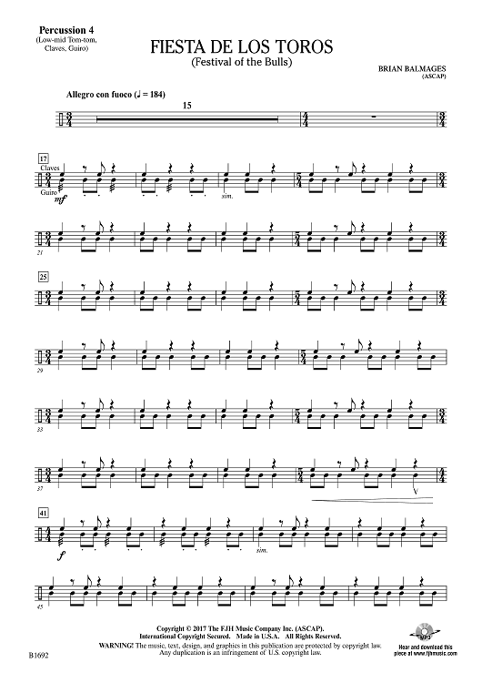 Digital Sheet Music for Fiesta de los Toros - Percussion 4 by Brian Balmages scored for Concert Band; id:510325