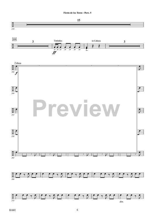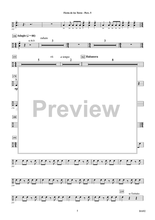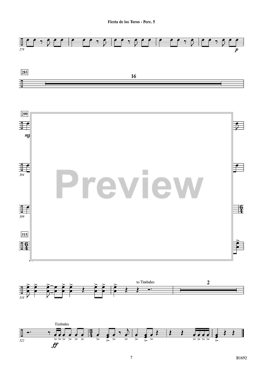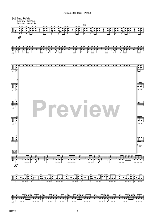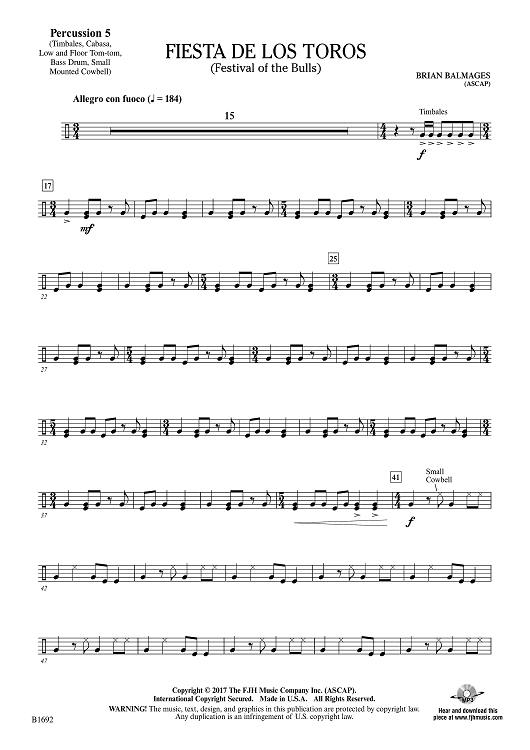 Digital Sheet Music for Fiesta de los Toros - Percussion 5 by Brian Balmages scored for Concert Band; id:510326