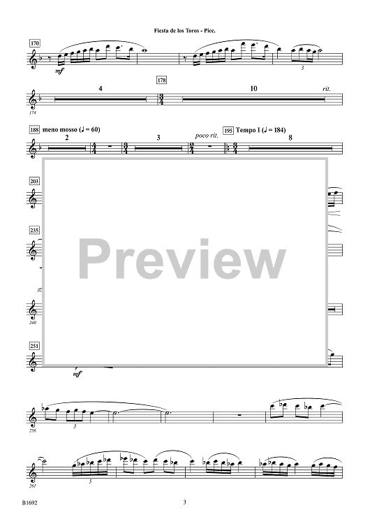 Digital Sheet Music for Fiesta de los Toros - Piccolo by Brian Balmages scored for Concert Band; id:510291
