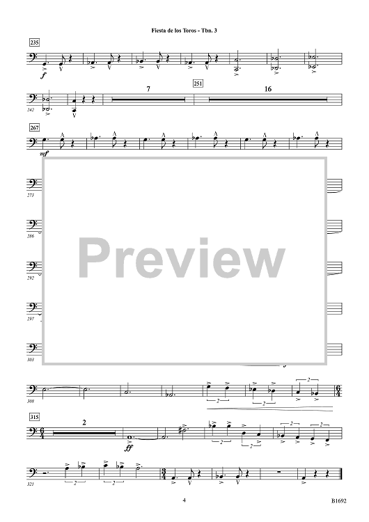 Digital Sheet Music for Fiesta de los Toros - Trombone 3 by Brian Balmages scored for Concert Band; id:510317