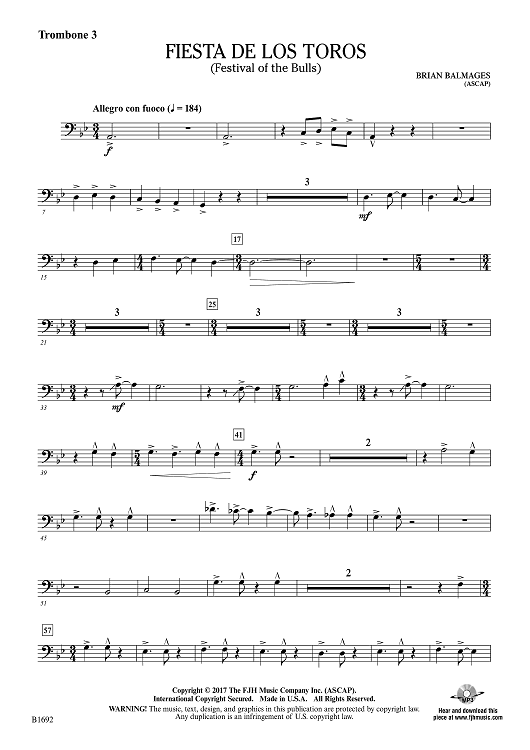 "Fiesta de los Toros - Trombone 3" Sheet Music by Brian Balmages