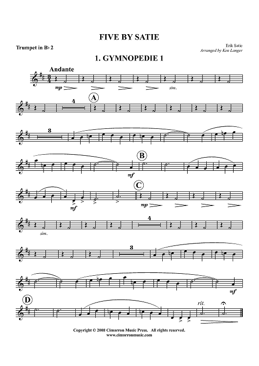"Five by Satie - Trumpet 2 in Bb" Sheet Music by Erik Satie