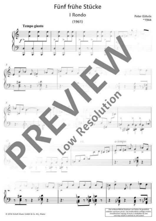 "Five Early Piano Pieces" Sheet Music by Peter Eötvös