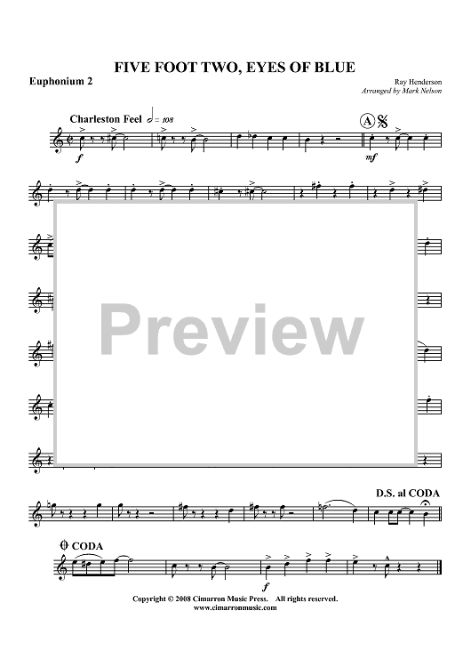 Digital Sheet Music for Five Foot Two, Eyes of Blue - Euphonium 2 BC/TC by Ray Henderson, Mark Nelson scored for Tuba Quartet; id:416534
