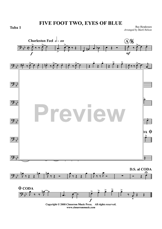 Digital Sheet Music for Five Foot Two, Eyes of Blue - Tuba 1 by Ray Henderson, Mark Nelson scored for Tuba Quartet; id:416535