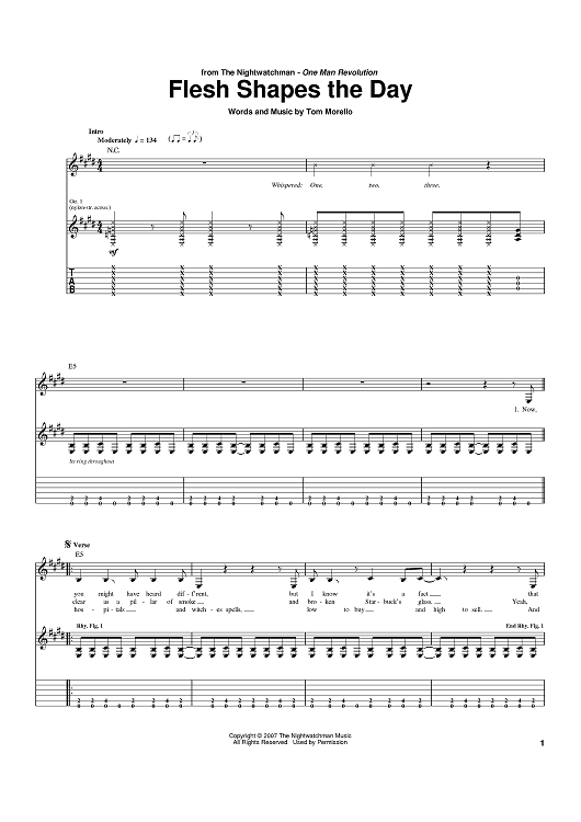 Digital Sheet Music for Flesh Shapes The Day by Tom Morello, The Nightwatchman scored for Guitar Tab; id:401122