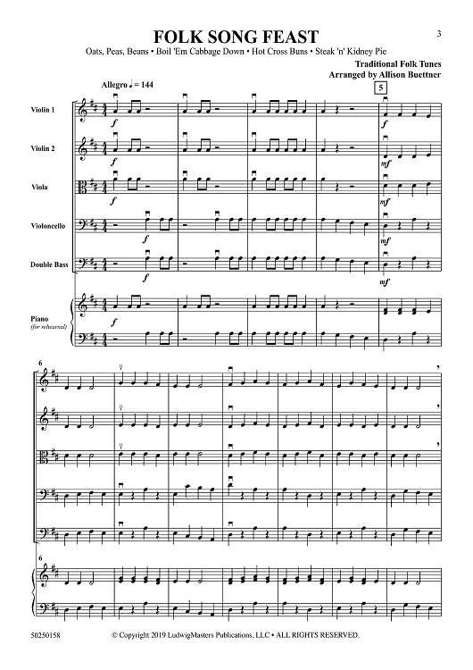 A creative way to review D major patterns with your young students! Using all scale notes in every part, this medley of folk songs includes: Oats, Peas, and Beans; Boil 'em Cabbage Down; Hot Cross Buns and Steak 'n' Kidney Pie.