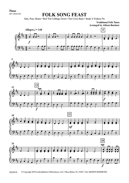 "Folk Song Feast - Piano (for rehearsal)" Sheet Music by Traditional