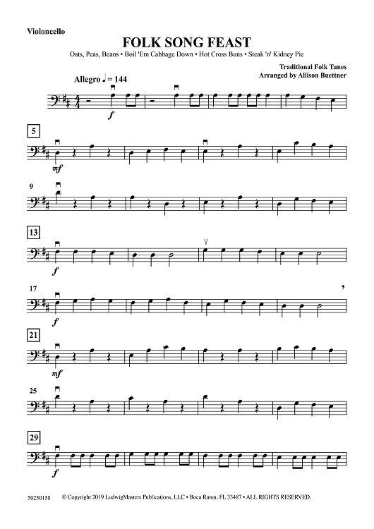 "Folk Song Feast - Violoncello" Sheet Music by Traditional