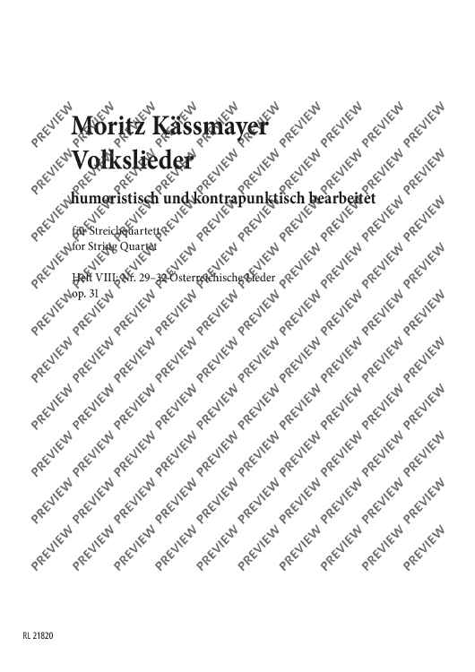 Digital Sheet Music for Folk Songs 8 - Set of Parts by Moritz Kaessmayer scored for String Quartet; id:502991