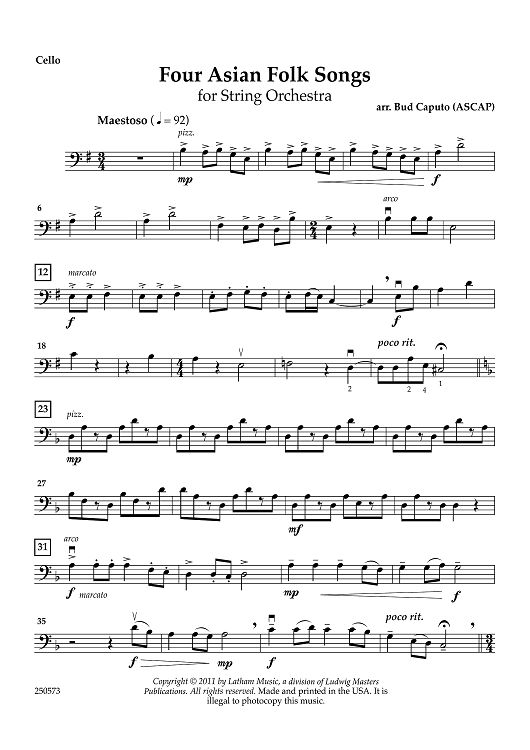 "Four Asian Folk Songs - Cello" Sheet Music by Traditional Asian