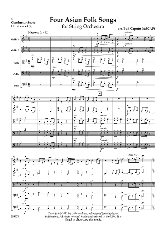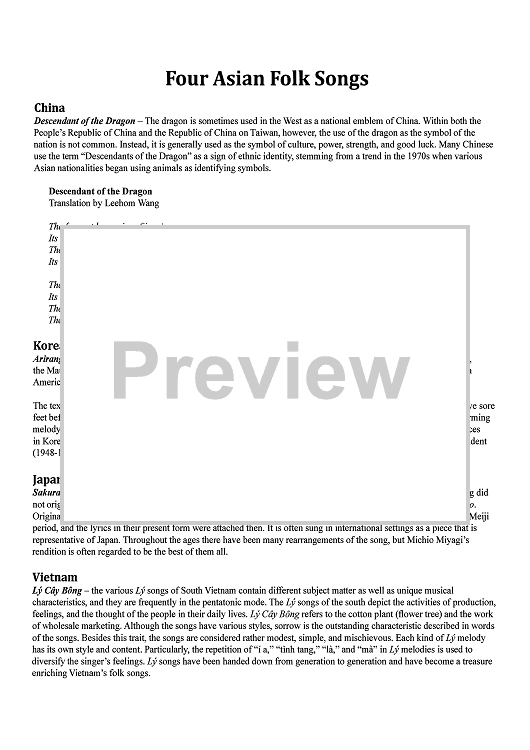 "Four Asian Folk Songs - Full Score" Sheet Music by Traditional Asian