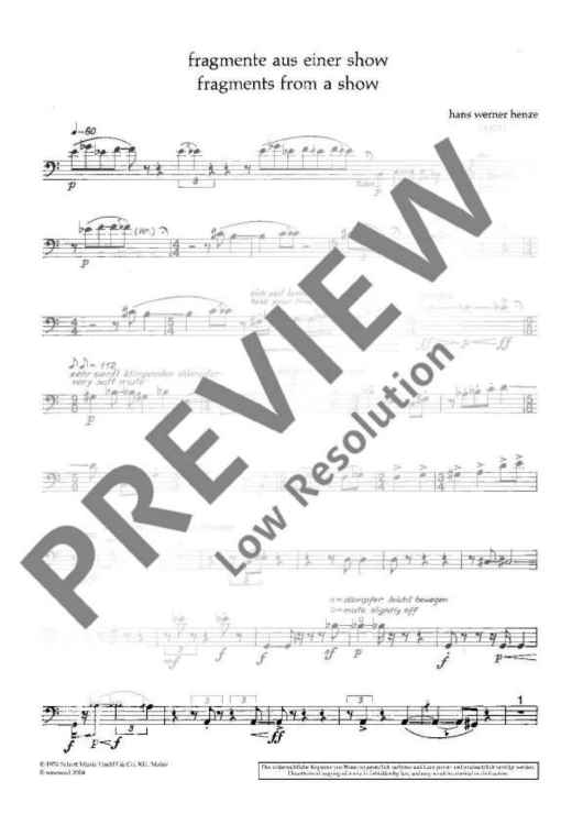 "Fragments from a Show - Set of Parts" Sheet Music by Hans Werner Henze