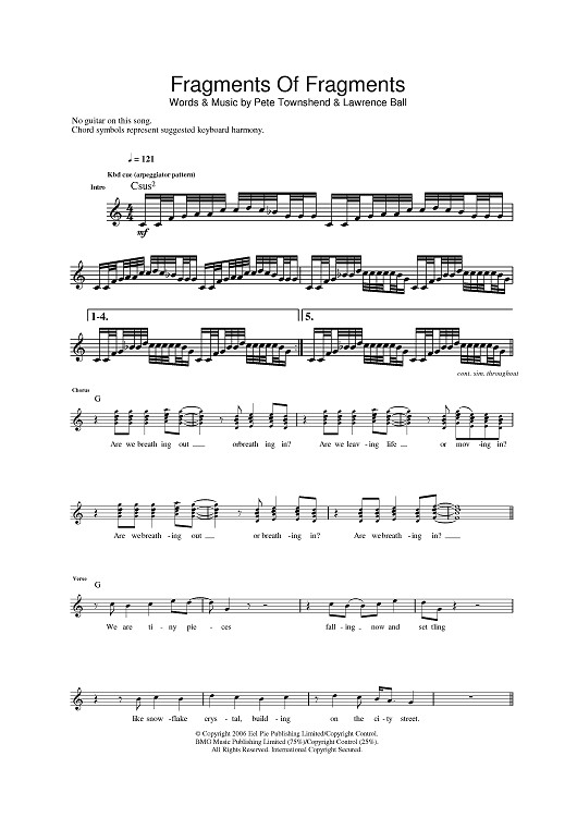 "Fragments of Fragments" is a track from 'Endless Wire', the 11th studio album by the English rock band the Who, released on 30 October 2006 in the UK through Polydor Records and the following day in the US by Universal Republic.