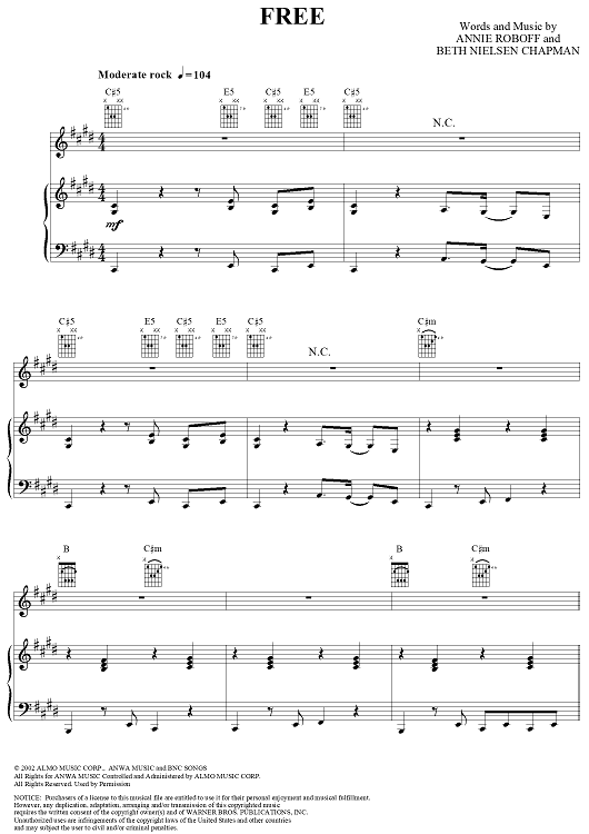 Digital Sheet Music for Free by Faith Hill, Beth Nielsen Chapman, Annie Roboff scored for Piano/Vocal/Chords; id:294619