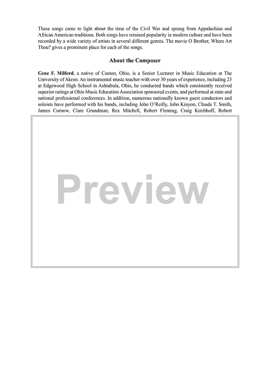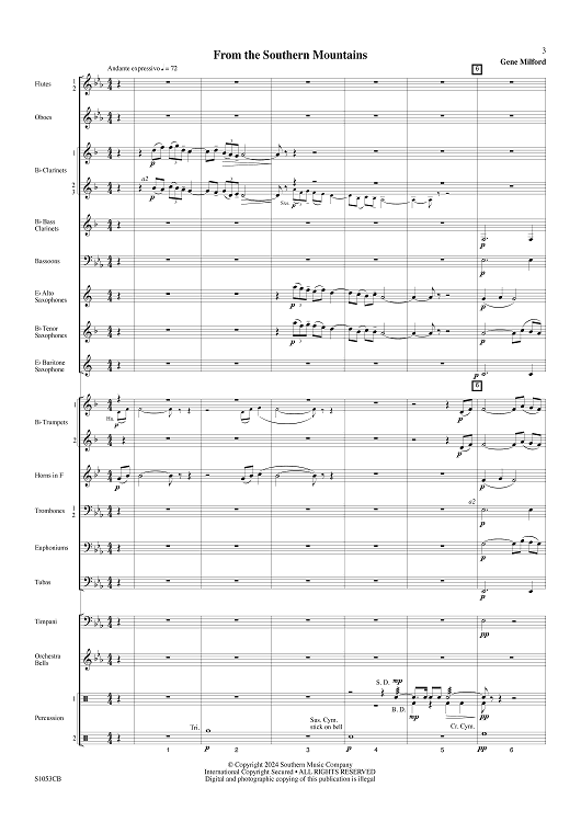 Digital Sheet Music for From the Southern Mountains - Full Score by Traditional, Gene Milford scored for Concert Band; id:506504