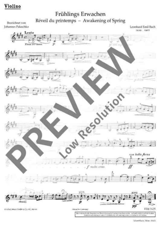 Digital Sheet Music for Frühlings Erwachen E major by Leonhard Emil Bach scored for Violin And Piano; id:474794